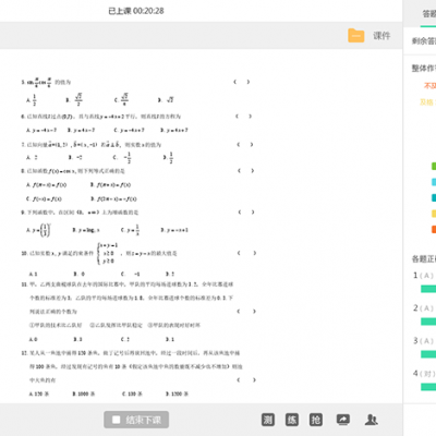 讲师可发布课堂练习并设置结束时间,学生完成后,讲师能看到整体作答情况